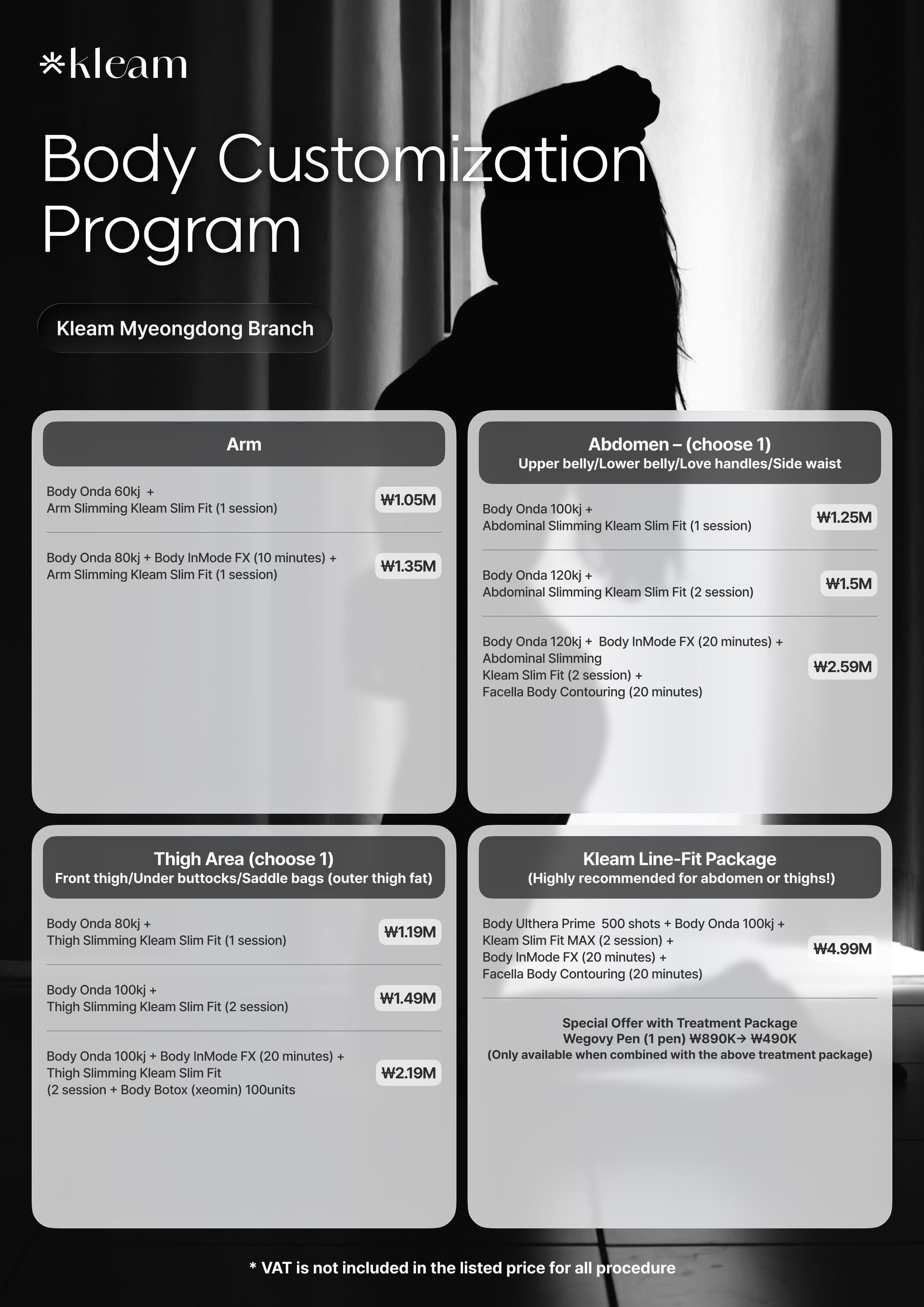 SS注射、スリムカット、発汗抑制ボトックス(多汗症)、ふくらはぎ輪郭形成注射、ふくらはぎPS注射、太もも輪郭形成注射、腕輪郭形成注射、腹部痩身注射、二重あご注射、脂肪溶解注射(脂肪分解)、セルライト治療、エクシリスボディ、クールシェーピング、リポセル、リポクライオ、カーボキシーセラピー、HIFEMボディスカルプティング、EMSカルプトNEO、アクセントプライム、ボディラジオ波、ラブハンドルリダクション、ブラジャーのふくらみ軽減、内ももリフト、膝脂肪注入、肩痩身ボトックス、ウエストライン痩身注射、スリムジョー注射、バックライン痩身、マフィントップ輪郭形成、360ボディライン注射